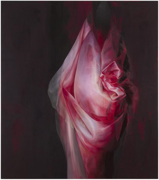 Surfaces are closed and open at the same time. The inside and outside mix, come out and are disappearing back and forth. The drapery evokes the physicality of human existence, while also alluding to the legacy of art history and the many things that clothing and drapery have expressed at different times in history.